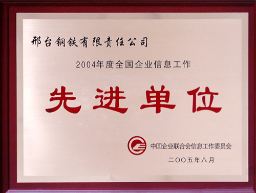 Xingtai Steel was awarded National Metallurgy Industry Information Work Advanced Unit.