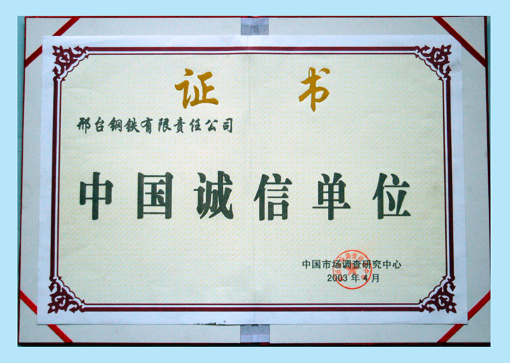 Xingtai Steel was named as Industrial Enterprise AAA Class Credit Unit of China.