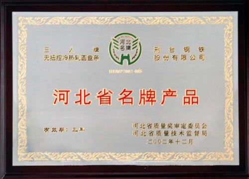 三人牌無扭控冷熱軋圓盤條獲河北省名牌產(chǎn)品