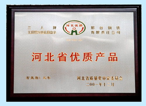 三人牌無扭控冷熱軋圓盤條獲河北省優(yōu)質產品