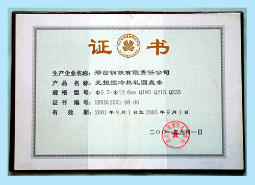 無扭控冷熱軋圓盤條獲河北省質量信得過產品