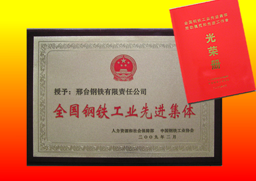 2009年2月,人力資源和社會(huì)保障部、中國鋼鐵工業(yè)協(xié)會(huì)授予邢鋼“全國鋼鐵工業(yè)先進(jìn)集體”榮譽(yù)稱號(hào)。