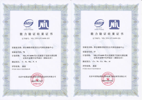 邢鋼理化檢驗中心參加國家實驗室能力驗證結(jié)果為“滿意”