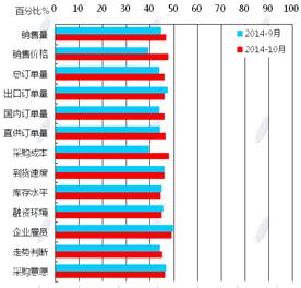 蘭格鋼鐵信息研究中心統(tǒng)計發(fā)布2014年10月鋼鐵流通業(yè)PMI總指數(shù)為47.8,環(huán)比微升0.6個百分點(見圖1),顯示鋼鐵流通市場活躍度略有好轉(zhuǎn)。從各項分指數(shù)看,10月份鋼鋼鐵流通業(yè)PMI調(diào)查的10項分指數(shù)5升5降。其中,企業(yè)銷量增加,下游訂單增加,但企業(yè)對后市較為謹(jǐn)慎,采購意愿未增(見圖2)??傮w判斷11月鋼鐵流通市場需求景氣微升。