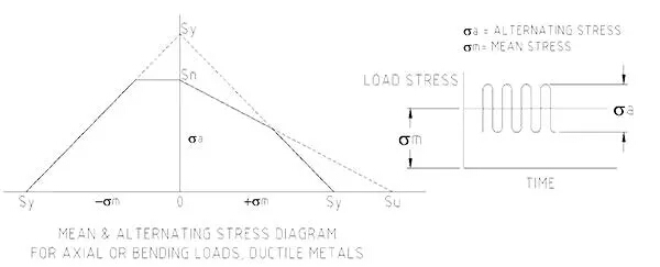 知道一部分將受到波動負(fù)載需要設(shè)計師設(shè)計的部分,為該條件。使用已知的極限拉伸應(yīng)力和屈服應(yīng)力(金屬首先開始永久變形的應(yīng)力,約80~90%的拉伸應(yīng)力),設(shè)計者構(gòu)造一個應(yīng)力限制包絡(luò),如圖2所示。然后設(shè)計該部件以使施加到其上的循環(huán)載荷為控制在包絡(luò)內(nèi)的應(yīng)力。