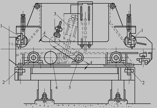 l-導輥;2-輥道;3-氣缸;4-活套輥;5-轉軸