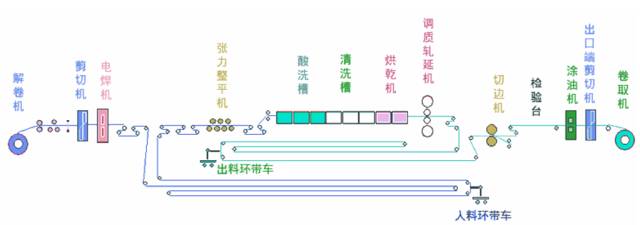連續(xù)式酸洗是一種高產(chǎn)優(yōu)質(zhì),發(fā)展較快的酸洗方法,它是通過在機(jī)組上設(shè)置焊機(jī)和活套裝置,使工藝段在換卷時(shí)不停機(jī),保證機(jī)組連續(xù)運(yùn)行,但機(jī)組長(zhǎng),設(shè)備復(fù)雜,投資較高。連續(xù)式酸洗線主要有兩種形式,分別是連續(xù)臥式酸洗機(jī)組和連續(xù)塔式酸洗機(jī)組。