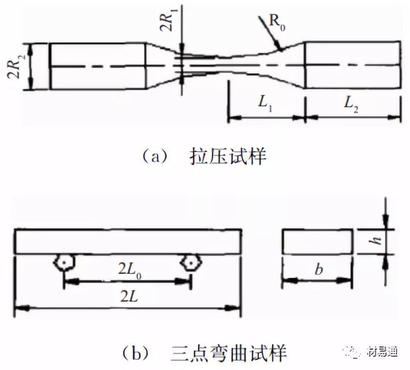 試樣分為拉壓試樣和三點(diǎn)彎曲試樣。