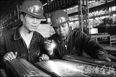 圖為邢鋼線材廠員工對修磨鋼坯進行檢驗的現(xiàn)場。