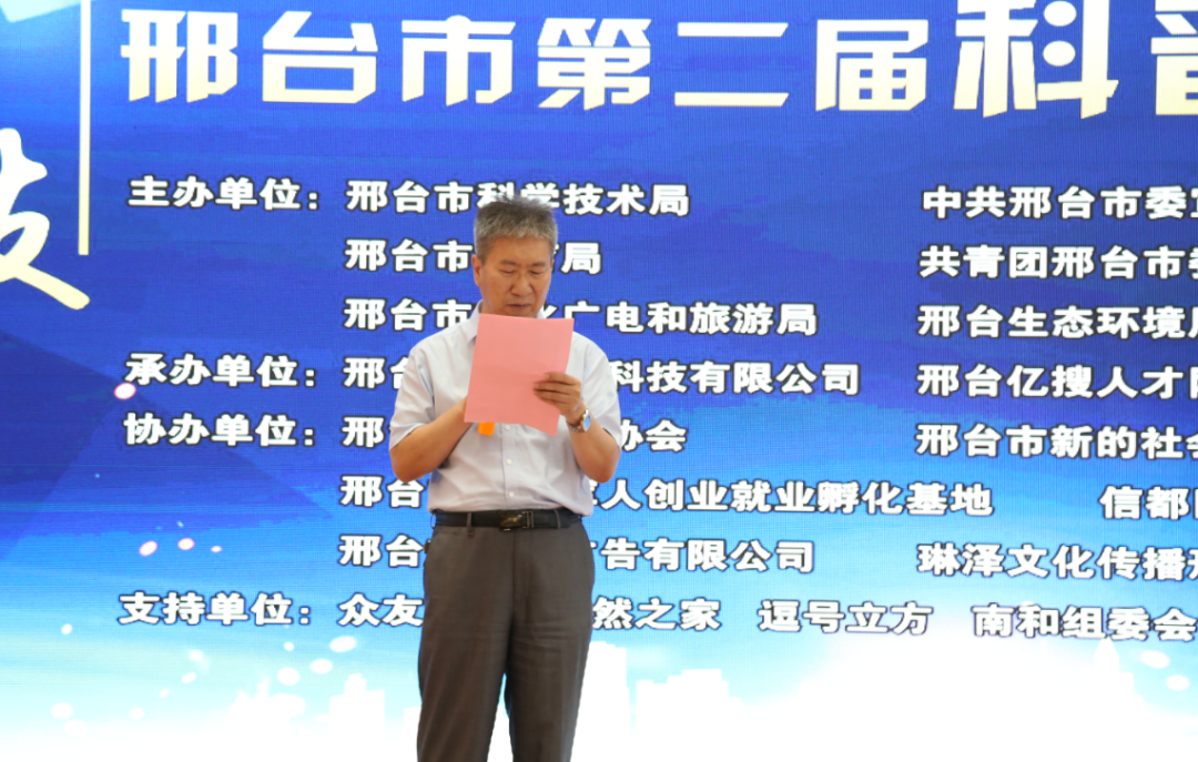 8月15日上午,由邢臺市科學(xué)技術(shù)局、中共邢臺市委宣傳部、邢臺市科學(xué)技術(shù)協(xié)會、邢臺市教育局、共青團(tuán)邢臺市委員會、邢臺市衛(wèi)生健康委員會、邢臺市文化廣電和旅游局、邢臺市生態(tài)環(huán)境局聯(lián)合舉辦的“邢鋼杯”2020邢臺市第二屆科普講解大賽啟動儀式在邢臺眾友家居活動廳舉行。