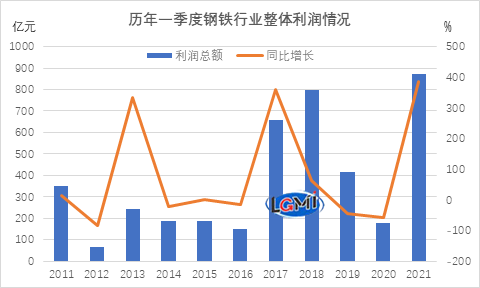 熱點(diǎn)事件:國家統(tǒng)計(jì)局?jǐn)?shù)據(jù)顯示,2021年一季度,黑色金屬冶煉和壓延加工業(yè)實(shí)現(xiàn)營業(yè)收入20483.1億元,同比增長(zhǎng)50.5%;營業(yè)成本18837.3億元,同比增長(zhǎng)47.7%;實(shí)現(xiàn)利潤(rùn)總額871.4億元,同比增長(zhǎng)387.6%。