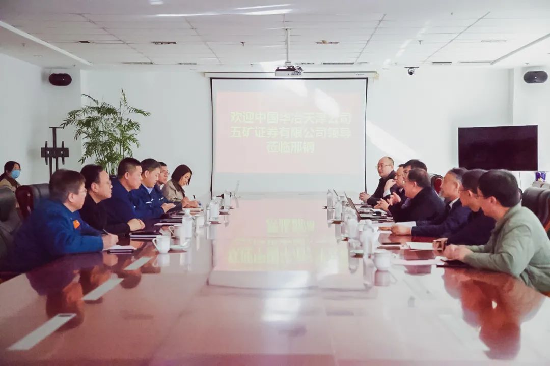 1月29日下午,中國(guó)華冶天津公司黨委書記兼總經(jīng)理高建峰、五礦證券有限公司實(shí)體經(jīng)濟(jì)部執(zhí)行總經(jīng)理馬晨光一行7人蒞臨邢鋼進(jìn)行交流。公司領(lǐng)導(dǎo)張育明、劉宏偉、魏利剛、陳繼林熱情接待了來訪客人。