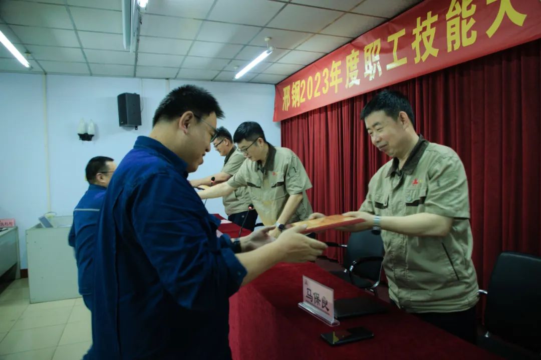 近日,邢臺鋼鐵有限責(zé)任公司在線材廠召開“2023年度職工技能比武大賽表彰會”,對取得優(yōu)異成績、表現(xiàn)突出的先進(jìn)個人和集體進(jìn)行表彰。公司總經(jīng)理彭世丹、副總經(jīng)理馬保良、韓清連為獲獎選手頒發(fā)榮譽(yù)證書并致賀。
