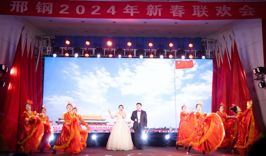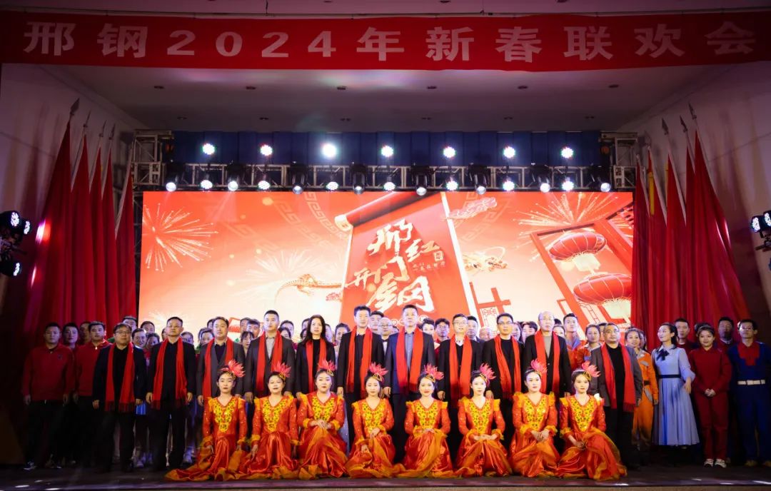 在聯(lián)歡會上,張育明董事長發(fā)表了熱情洋溢的致辭,代表公司、公司黨委向全體員工致以新春祝福。他說,2023年,在邢臺市委、市政府的指導(dǎo)、支持下,邢鋼完成股權(quán)重組,各二級單位以“保質(zhì)、提產(chǎn)、降本”為主線,精誠協(xié)作,創(chuàng)新管理,堅(jiān)定實(shí)施“精品戰(zhàn)略”;廣大員工自覺踐行“誠信、擔(dān)當(dāng)、實(shí)干、創(chuàng)新、聚力、共贏”核心價值觀,愛崗敬業(yè),努力拼搏,為邢鋼健康運(yùn)營做出了積極貢獻(xiàn);邢鋼轉(zhuǎn)型升級搬遷改造項(xiàng)目順利奠基,項(xiàng)目建設(shè)穩(wěn)步推進(jìn),新邢鋼已從藍(lán)圖走向現(xiàn)實(shí)。2024年,要一手抓老廠區(qū)的安全生產(chǎn)和經(jīng)營,維護(hù)好邢鋼品牌;一手抓新邢鋼建設(shè),全力以赴推進(jìn)高標(biāo)準(zhǔn)、高質(zhì)量、高效率施工,確保一期項(xiàng)目按計劃竣工投產(chǎn),把新邢鋼建成“開放、智慧、綠色、靈動、融合”的世界一流特鋼標(biāo)桿企業(yè)。
