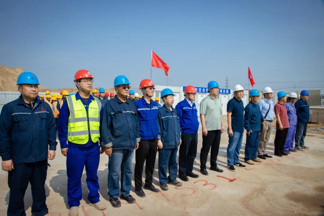 在激情似火的項(xiàng)目施工現(xiàn)場,公司董事長張育明、總經(jīng)理彭世丹、副總經(jīng)理馬保良、柳萬超、韓清連等及監(jiān)理公司代表和現(xiàn)場施工隊(duì)伍,共同見證了制氧工程的空分設(shè)備安裝。