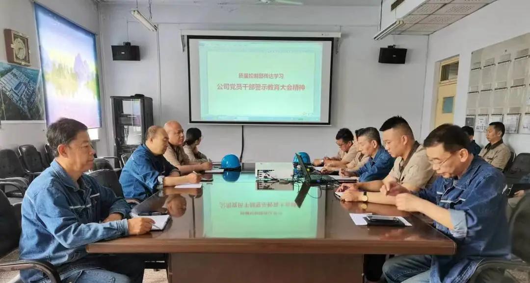 質(zhì)控部召開黨員警示教育大會,學(xué)習(xí)貫徹張育明董事長講話精神。會議強調(diào):質(zhì)控部負責公司進廠物料、過程和出廠產(chǎn)品的檢驗和計量。每一個崗位都是一個窗口,關(guān)系到公司形象、公司利益、過程穩(wěn)定、產(chǎn)品質(zhì)量,產(chǎn)品檢驗。要求各車間主任及黨員骨干要認真履責,把黨風黨紀常抓不懈,從嚴要求自己,切實做到風清氣正、陽光質(zhì)檢。