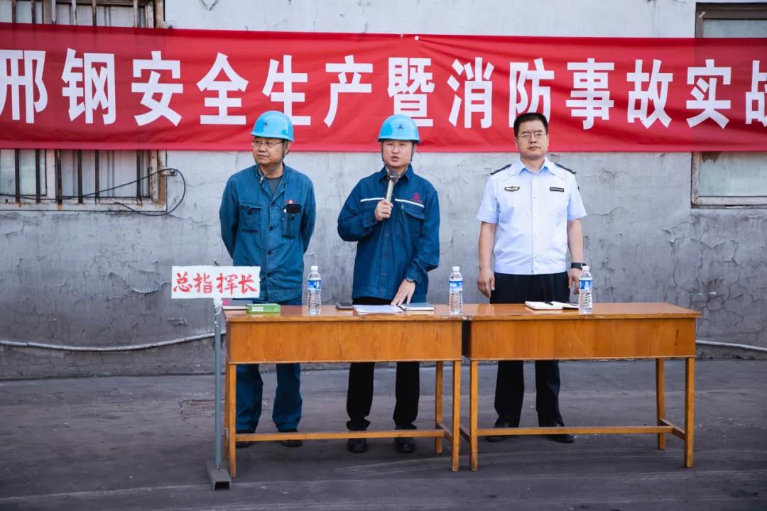 上午8點(diǎn)55分,邢鋼副總經(jīng)理李紅超宣布應(yīng)急演練正式開(kāi)始。9時(shí),中控室氣體檢測(cè)報(bào)警設(shè)施顯示5#探頭報(bào)警,粗苯工檢查發(fā)現(xiàn)粗苯罐放空閥外側(cè)法門(mén)里側(cè)法蘭開(kāi)裂,發(fā)生粗苯泄漏,隨即報(bào)告值班廠長(zhǎng),焦化廠粗苯儲(chǔ)罐事故專(zhuān)項(xiàng)應(yīng)急預(yù)案響應(yīng)啟動(dòng)。警報(bào)一響,應(yīng)急指揮部迅速成立,現(xiàn)場(chǎng)所有人員在指揮長(zhǎng)的指導(dǎo)下,按照應(yīng)急預(yù)案有序開(kāi)展了處置、救援等應(yīng)急程序。線材廠、煉鋼廠、煉鐵廠、質(zhì)控部等單位組織人員到現(xiàn)場(chǎng)觀摩學(xué)習(xí)。