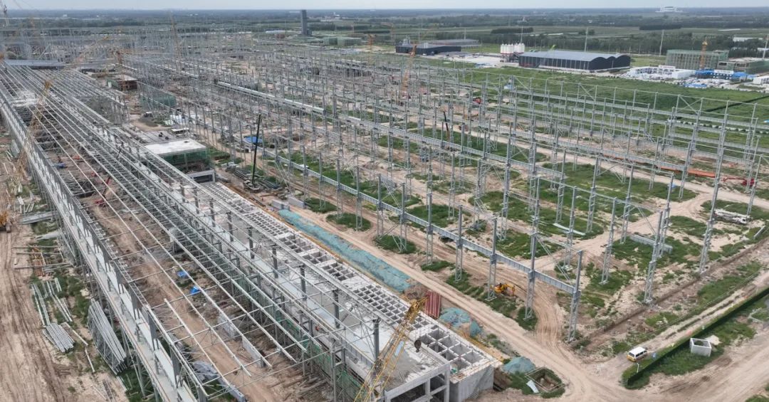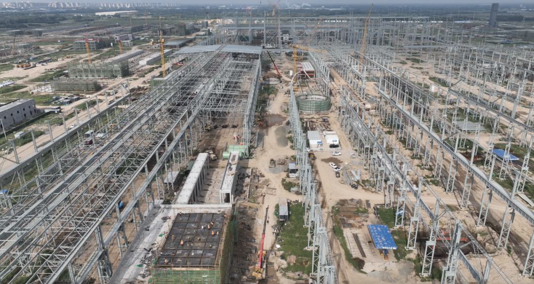 工程車來回穿梭的車轍印、大型機(jī)械的轟鳴聲、矗立的鋼結(jié)構(gòu)和封頂?shù)慕ㄖ黧w、塔吊揮舞著長(zhǎng)臂加緊為建設(shè)者運(yùn)送物資……日前,位于威縣高新區(qū)的邢臺(tái)鋼鐵有限責(zé)任公司搬遷升級(jí)項(xiàng)目(以下簡(jiǎn)稱“邢鋼搬遷升級(jí)項(xiàng)目”)正在有序緊張施工中,2000余名工人分布在各個(gè)作業(yè)面,項(xiàng)目已全面進(jìn)入地上鋼結(jié)構(gòu)及主線設(shè)備基礎(chǔ)施工階段,項(xiàng)目一期預(yù)計(jì)今年年底建成投產(chǎn)。