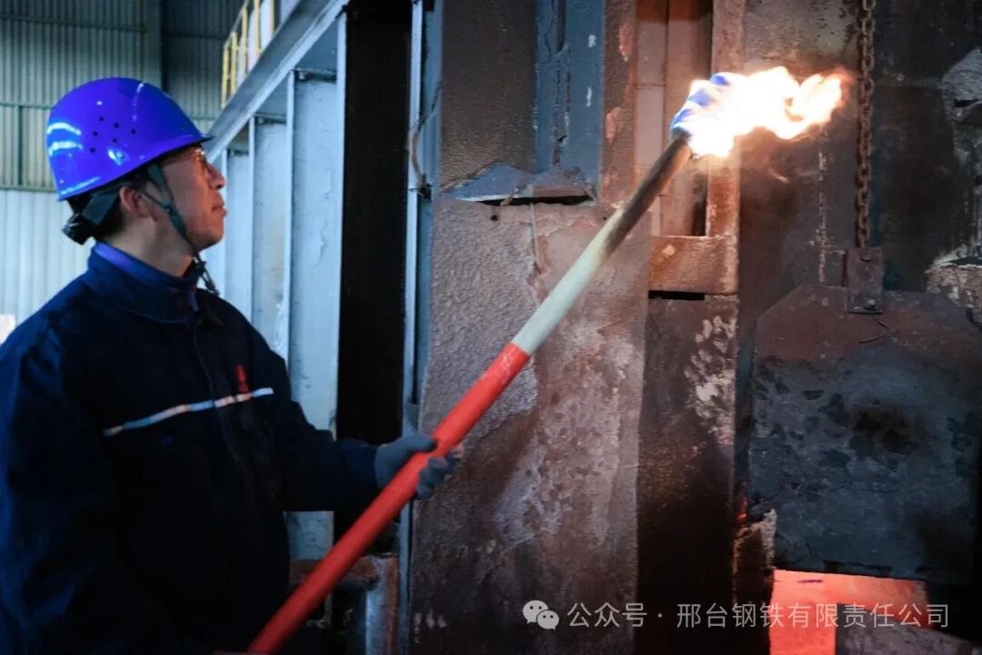 8時(shí)08分,象征邢鋼“求精、求細(xì)、求實(shí)”企業(yè)精神的老廠火種,在線材廠五線車間成功采集。隨后,火種由線材廠廠長孔令波乘車護(hù)送至百公里外的新廠區(qū),完成火種傳遞。11時(shí)08分,邢鋼黨委書記、董事長張育明親手點(diǎn)燃了烘爐的火把,隨著爐中火焰熊熊燃起,邢鋼軋鋼大盤卷加熱爐“點(diǎn)火”成功。
