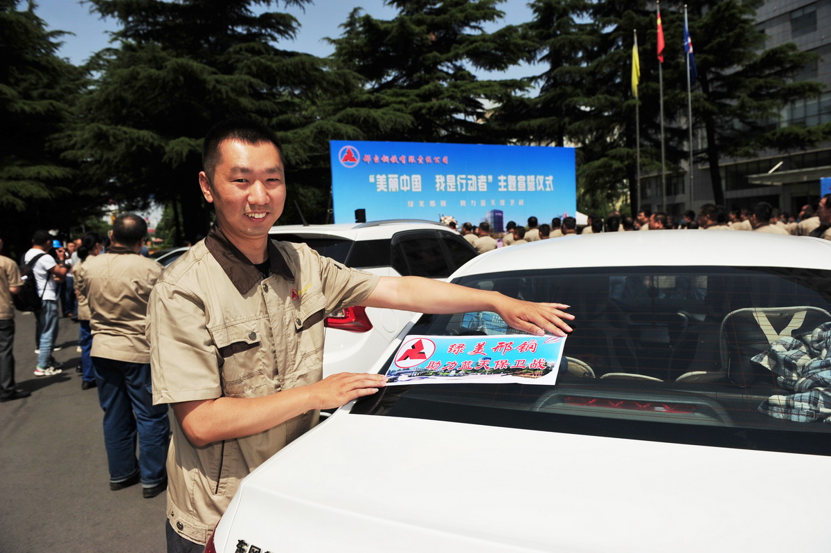 宣誓儀式上,還開(kāi)展了“美麗中國(guó) 我是行動(dòng)者”主題簽名活動(dòng),來(lái)賓和公司領(lǐng)導(dǎo)向環(huán)保宣傳車司機(jī)代表發(fā)放了車貼。
