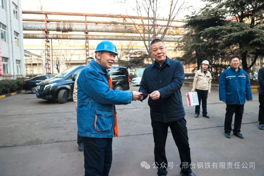慰問中,張育明董事長對大家在過去一年里為邢鋼老廠區(qū)穩(wěn)定和新廠區(qū)建設(shè)付出的艱辛努力表示衷心感謝。他表示,鋼鐵是工業(yè)的脊梁,一線是企業(yè)的根基。在萬家團(tuán)圓的時刻,大家用堅守詮釋責(zé)任,用奉獻(xiàn)點(diǎn)亮新春,生動展現(xiàn)了邢鋼人“鐵一般擔(dān)當(dāng)”的精神風(fēng)貌。